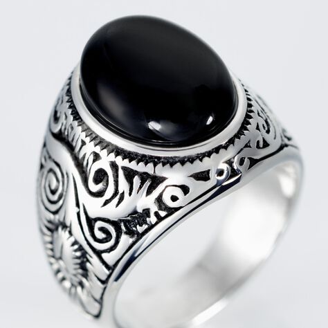 Chevaliere Acier Blanc Romanus Pierre - Bijoux fantaisie Homme | Marc Orian