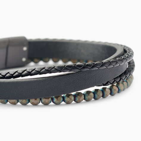 Bracelet Jourdan Cuir De Vache Noir Hématite