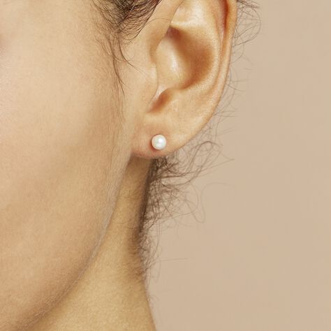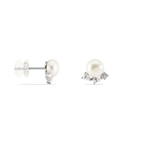 Boucles D'oreilles Puces Yarie Or Blanc Perle De Culture Et Oxyde