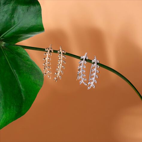 Boucles D'oreilles Grimpantes Folia Argent Blanc