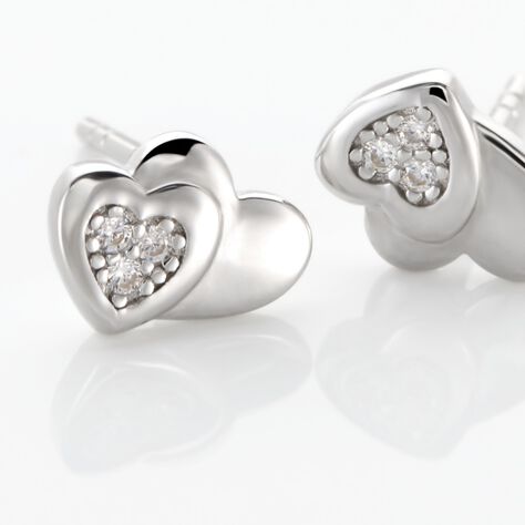 Boucles D'oreilles Puces Huan Cœur Or Blanc Oxyde De Zirconium - Puces Femme | Marc Orian