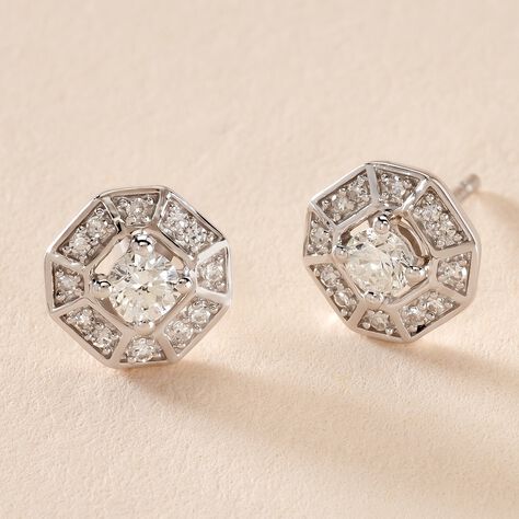 Boucles D'oreilles Puces Transmission Or Blanc Diamant
