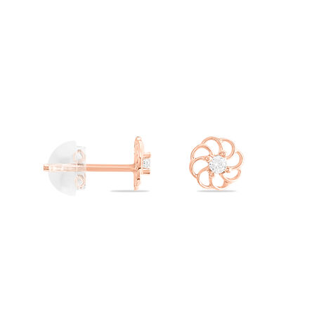 Boucles D'oreilles Puces Eleanor Fleur Or Rose Oxyde De Zirconium
