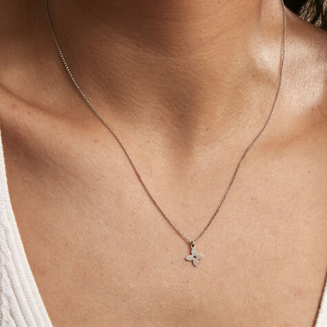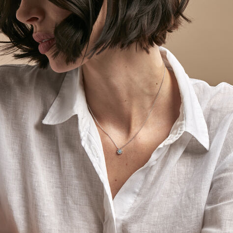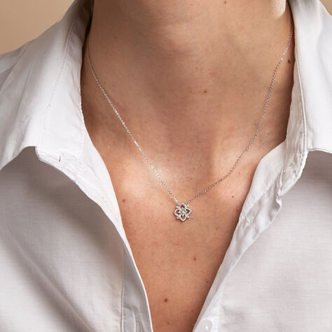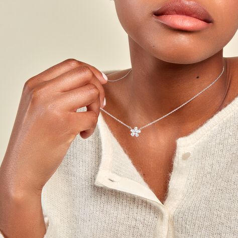 Collier Argent Blanc Blossom Oxyde De Zirconium