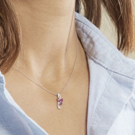 Collier Angie Or Blanc Diamant Et Rubis