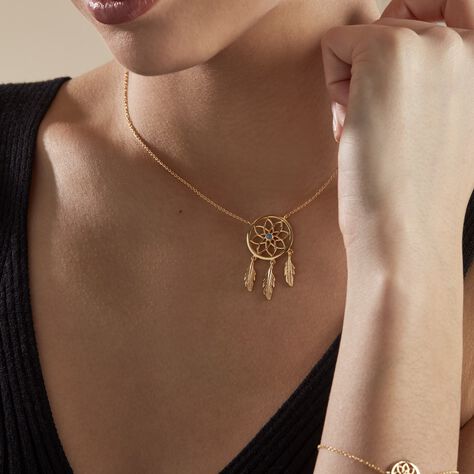 Collier Plaqué Or Jaune Attrape Rêves Turquoise
