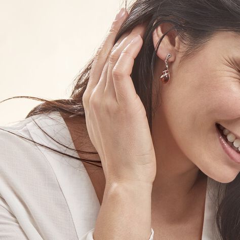 Boucles D'oreilles Pendantes Argent Blanc Melusine Ambre