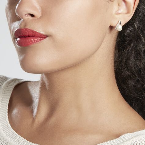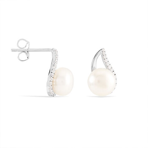 Boucles D'oreilles Puces Sasha Argent Blanc Perle De Culture Et Oxyde