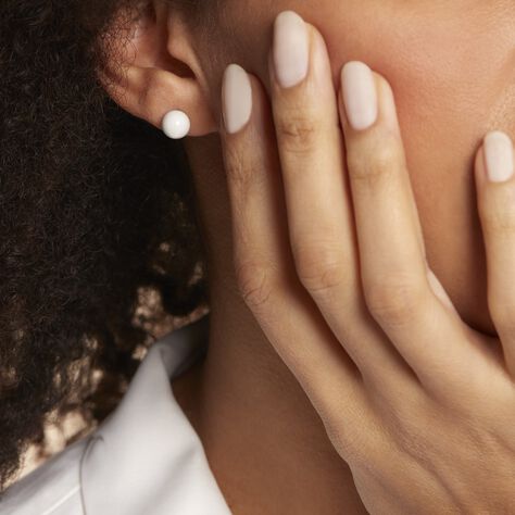 Boucles D'oreilles Puces Orbe Argent Blanc Céramique