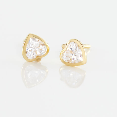 Boucles D'oreilles Puces Dot Coeur Plein Or Jaune Oxyde De Zirconium - Puces Femme | Marc Orian