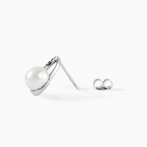 Boucles D'oreilles Puces Sasha Argent Blanc Perle De Culture Et Oxyde