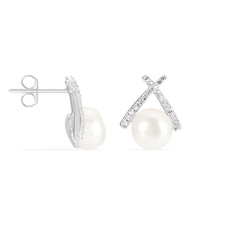 Boucles D'oreilles Puces Yacinthe Argent Perle De Culture Et Oxyde