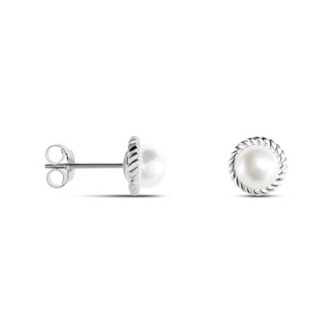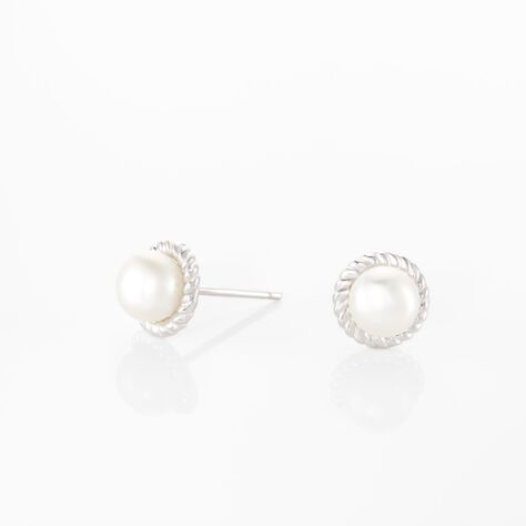 Boucles D'oreilles Puces Vittorio Argent Blanc Perle De Culture