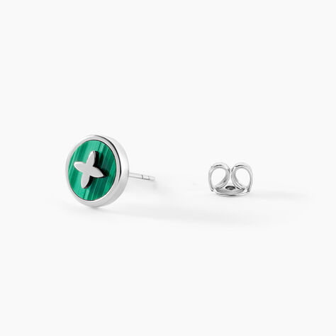 Boucles D'Oreilles Puces Talismania Argent Blanc Malachite