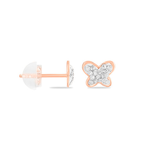 Boucles D'oreilles Puces Evaelle Papillon 0 Or Rose Strass