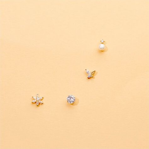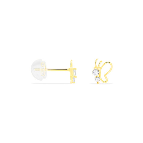Boucles D'oreilles Puces Evaelle Papillon Or Jaune Oxyde De Zirconium