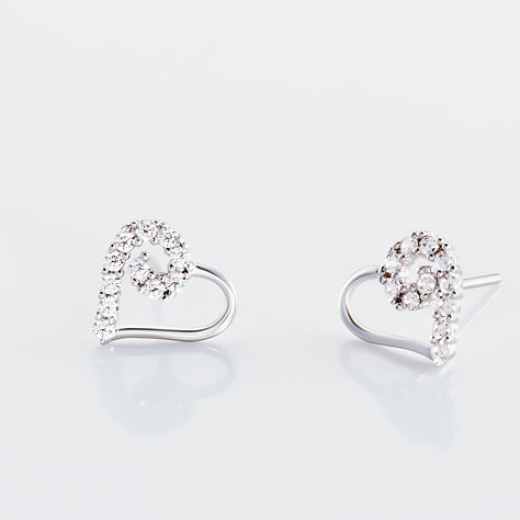 Boucles D'oreilles Puces Eluf Cœur Or Blanc Oxyde De Zirconium - Puces Femme | Marc Orian