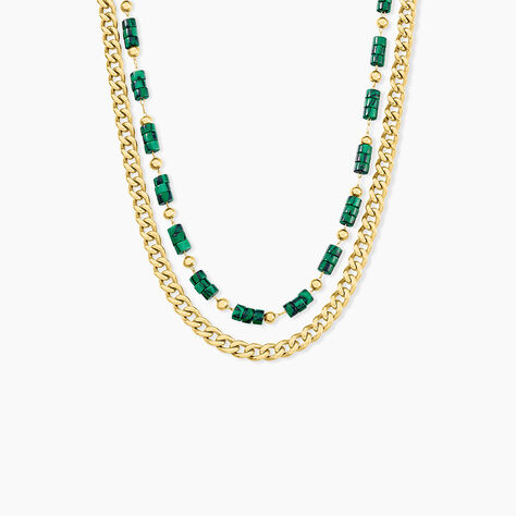Collier Athena Acier Doré Malachite - 45 cm