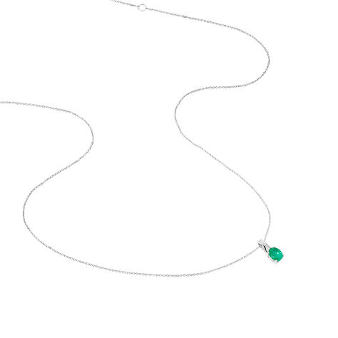 Collier Charmante Or Blanc Emeraude Et Diamant - 50 cm