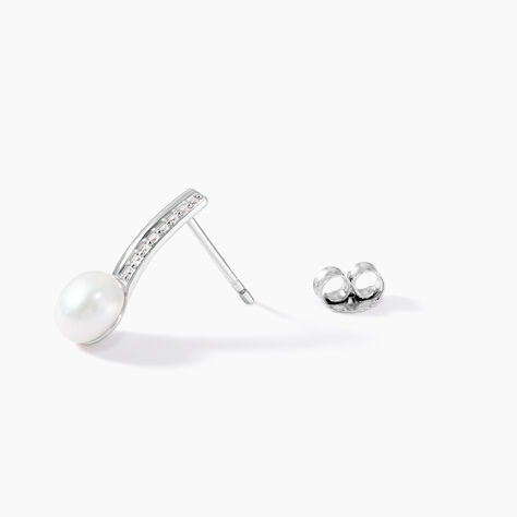 Boucles D'oreilles Puces Argent Blanc Cheri Perle De Culture Oxydes