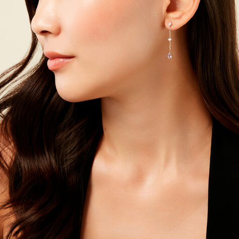 Boucles D'Oreilles Pendantes Thurayya Or Jaune Améthyste Oxyde De Zirconium