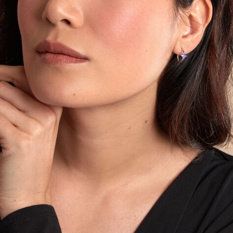 Boucles D'oreilles Puces Edy Serti Clos Or Blanc Amethyste